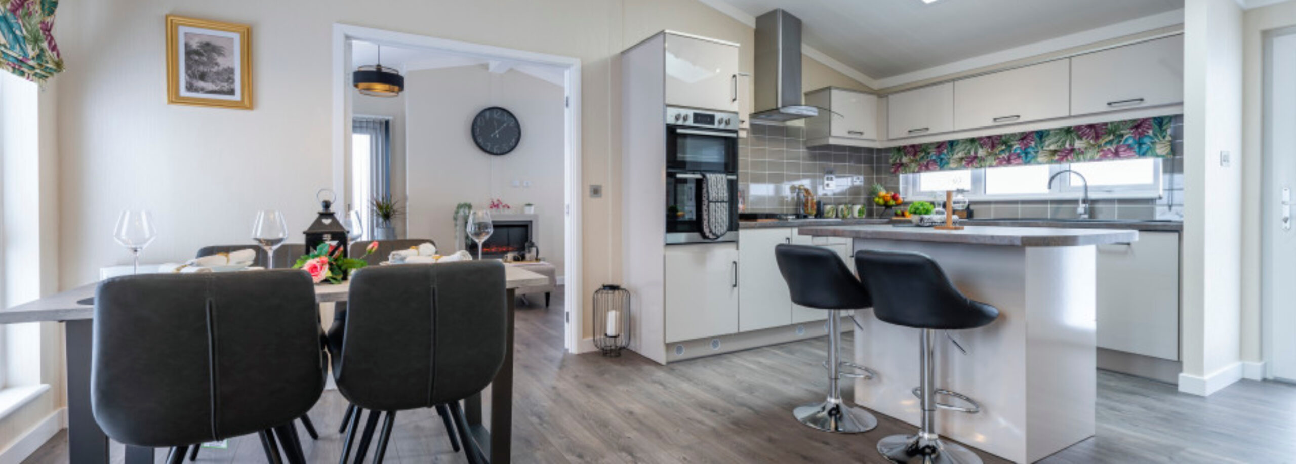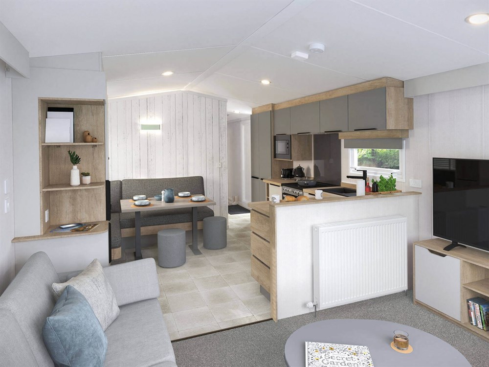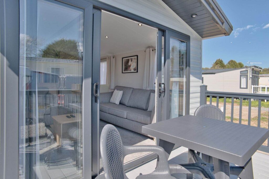 Modern caravans and lodges with comfortable living space and outdoor areas