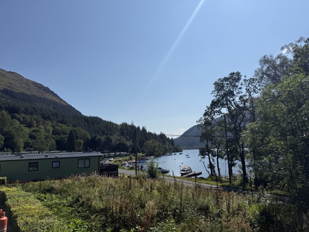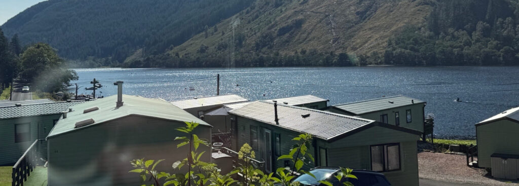 Stratheck Holiday Park sits within the Loch Lomond & The Trossachs National Park, with wooded hills rising on all sides and the River Eachaig flowing alongside the park. The setting feels remote and peaceful, yet the park remains easy to reach from Dunoon and central Scotland.