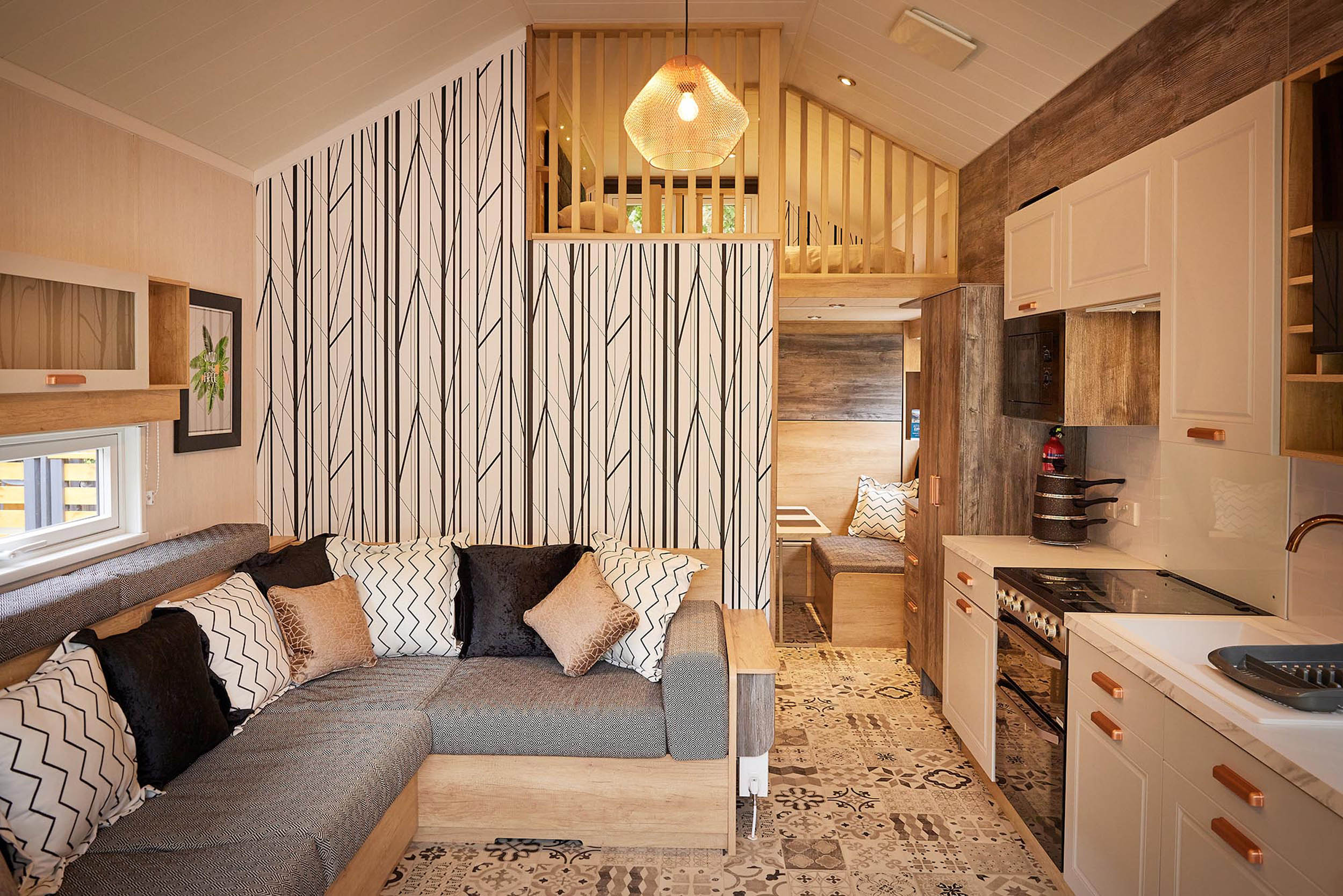 Contemporary glamping pods sleeping up to four, with mezzanine sleeping areas, fully fitted kitchens, ensuite showers and private decking with hot tubs on selected dog-friendly units.large decks for soaking up the views.