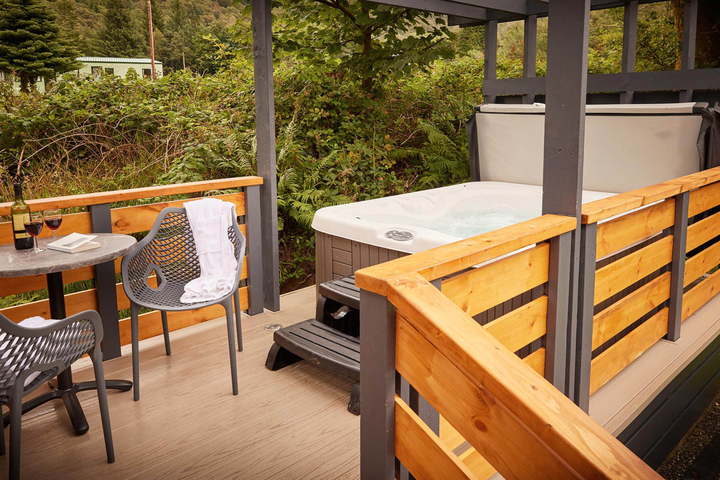 Stylish single-storey cottages with open-plan living, full kitchens and outdoor hot tubs, ideal for couples, families or friends sharing.